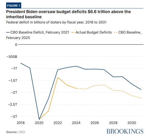 • Biden’s budget failure: $6.6 trillion in new deficits as spending rises. Jessica Riedl of the Brookings Institution he writes in a new report that total budget deficits for 2021-2031 grew from an estimated $14.5 trillion when Biden took office to $21.2 trillion when he left. “Biden has signed legislation and executive actions that cost $6.6 trillion over the last decade– compared to $7.8 trillion for President Trump, $5.0 trillion for President Obama, and $6.9 trillion for President Bush. And like President Trump, Biden enacted this spending in just one four-year term. […] The biggest drivers were the pandemic response and stimulus ($2.1 trillion), the expansion of discretionary spending ($1.7 trillion), the expansion of veterans benefits ($837 billion), the executive orders for student loans ($755 billion), and the increase in defense ($596 billion). Riedl concludes Biden left the White House with budget deficits of nearly $2 trillion, rising interest rates, and the largest spending spree in American history without world wars and the Great Depression. The continued failure to address the unsustainable costs of Social Security and Medicare leaves a 30-year base deficit of $110 trillion. “