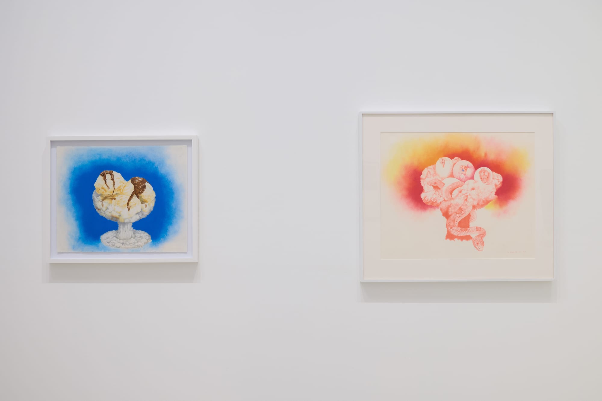 Nancy Buchanan, “American Dreams #3: Sweet Dreams” (1981) (left) and “American Dreams #4” (1982), pastel and pencil on paper.