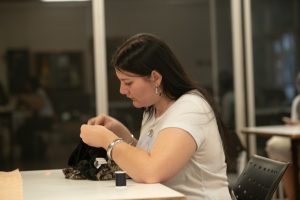 Sophomore public relations major Nila Guhasarkar is one of the two assistant show chairs, and has been a member of the Fashion Society for two years now. At the beginning of the school, he was given the opportunity to apply for his seat position, and he jumped at the chance.